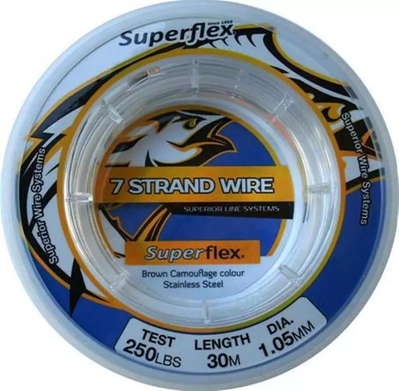 Superflex 7-Strand, stainless wire is a flexible wire that is very fine in diameter for it’s rated break strain. This is our most popular wire leader material for all general bait & lure fishing – particularly for Mackerel, Wahoo, Reef fish and small sharks. Best connection is achieved with Superflex Single Leader Sleeves using the Superflex Deluxe Tool.