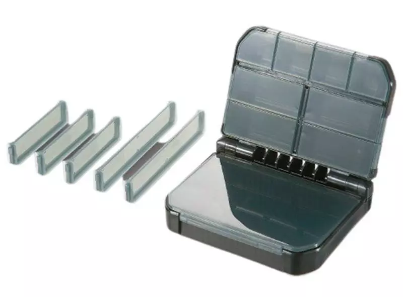 These are a folding case which means the case opens to reveal compartments on each side of the container. This case has a spring-loaded closing system that keeps the lid closed without the use of a latch. This case is made from a strong impact resistant copolymer plastic in an opaque black colour.